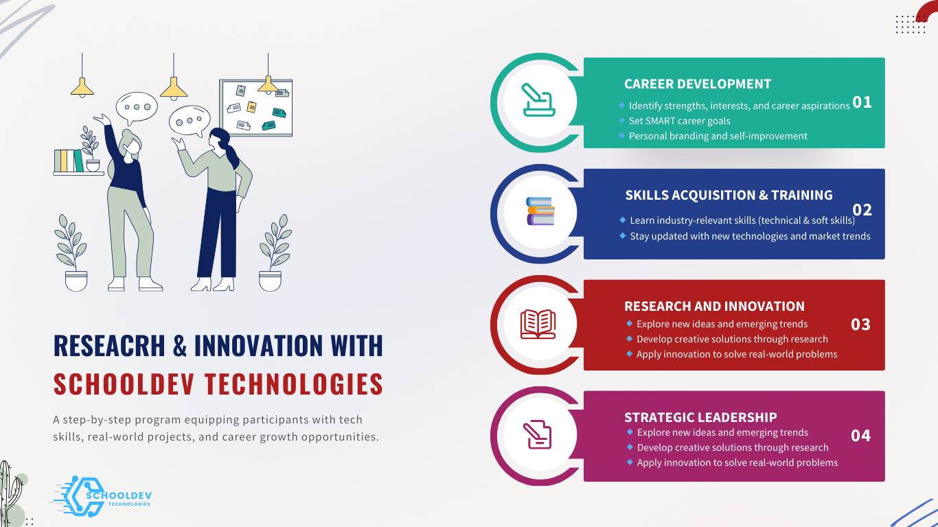 At SchoolDev Technology, we empower learners and professionals with hands-on training, expert mentorship, and industry-relevant skills. Whether you're looking to upskill in data science, software development, or research solutions, we've got you covered!